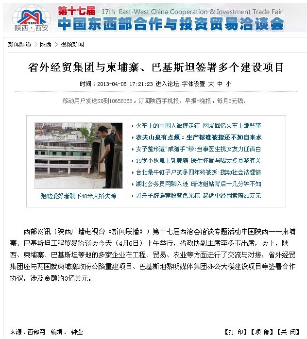十七屆東西部洽談會網(wǎng)站:省外經(jīng)貿(mào)集團與柬埔寨、巴基斯坦簽署多個建設項目