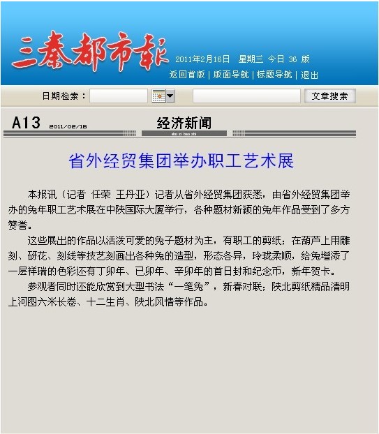 三秦都市報報道我集團舉辦職工藝術(shù)展