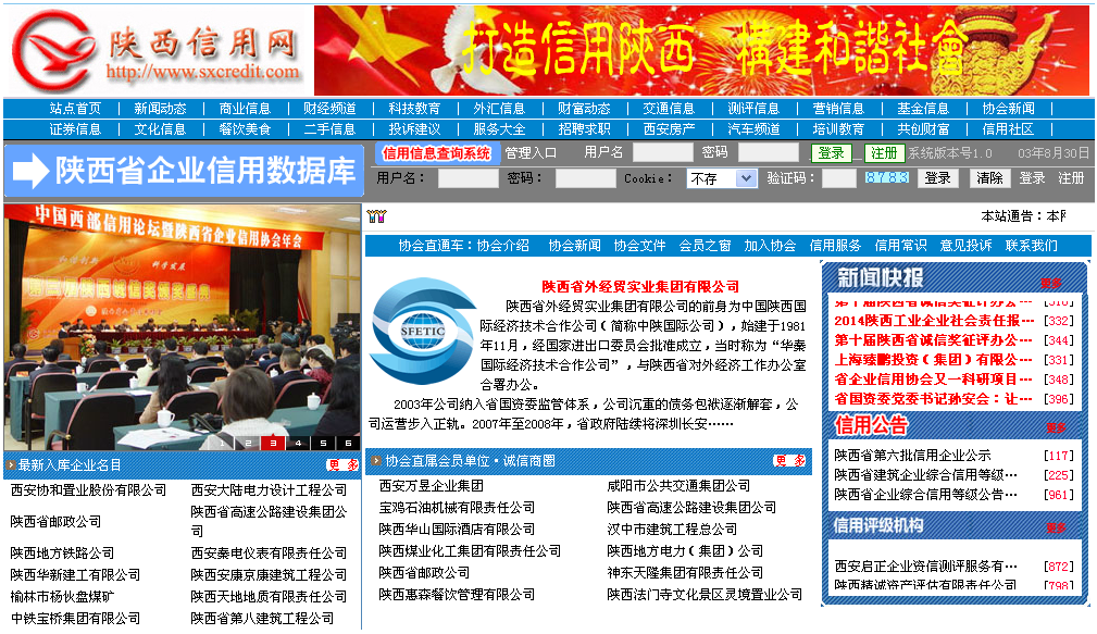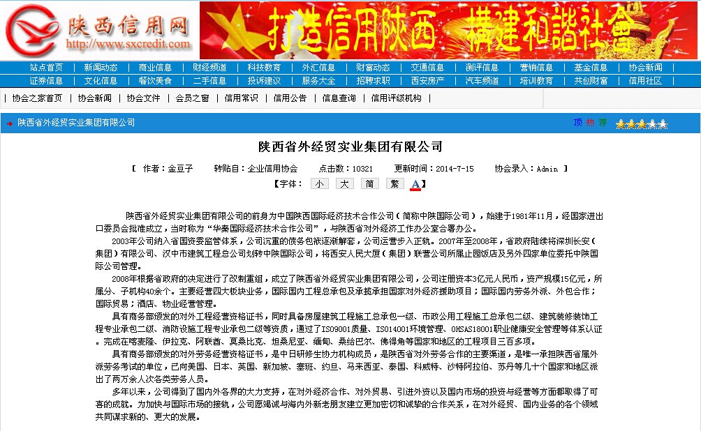 陜西省外經(jīng)貿(mào)實業(yè)集團有限公司榮登陜西信用網(wǎng)首頁